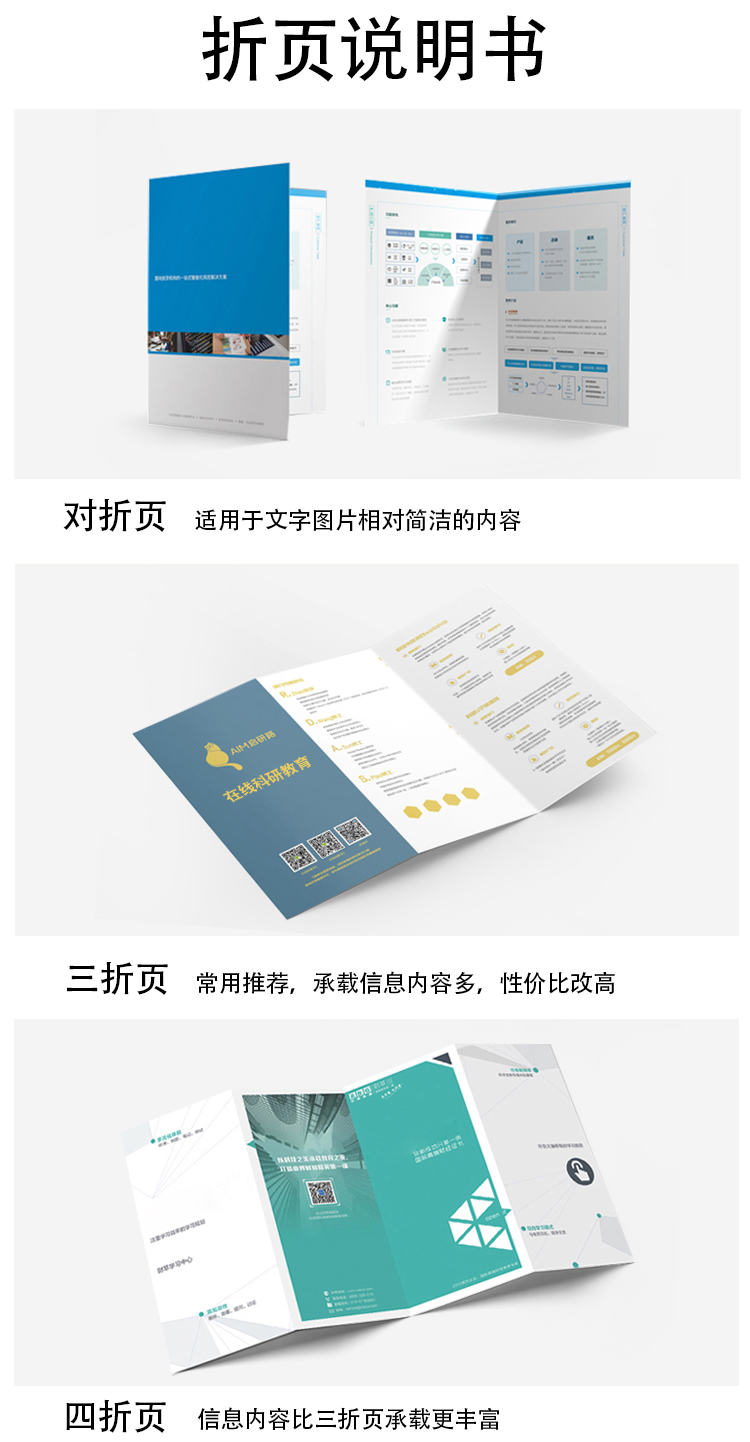宣傳折頁(yè)印刷,宣傳物料印刷,折頁(yè)印刷 常用尺寸:?jiǎn)挝籱m:?210×285、420×285、285×630、285×840; 常用紙張:雙銅紙、啞粉紙、雙膠紙、超感紙 (建議克數(shù):157克、200克、230克、250克) 常用工藝:過(guò)光/啞膠、局部UV、壓紋、擊突、燙金/銀、印專金/專銀 出貨周期:紙張200克以下厚度一般2~3天,紙張200克以上厚度壓線折頁(yè)一般3~4天(定稿起計(jì)) 包裝方式:紙箱
